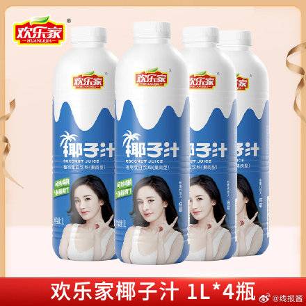 24.9元包邮,欢乐家 生榨椰子汁1L*4瓶