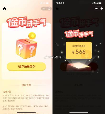 【微信1金币抽最高888亓提现券】微信打开地址->直接用1金币抽提现券(如果没有金币就左上角返回首页领下)