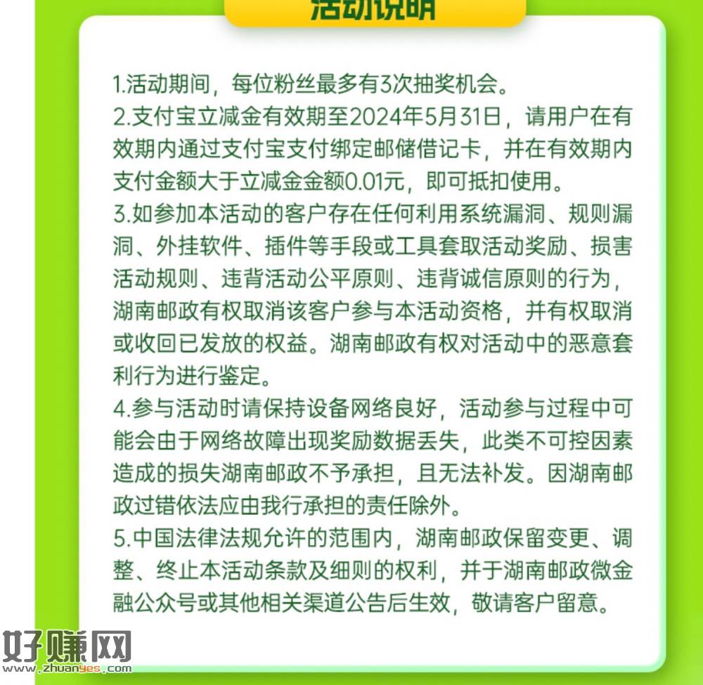 湖南邮储公众号新人0.01抽最高88.88之父宝立减金,最多