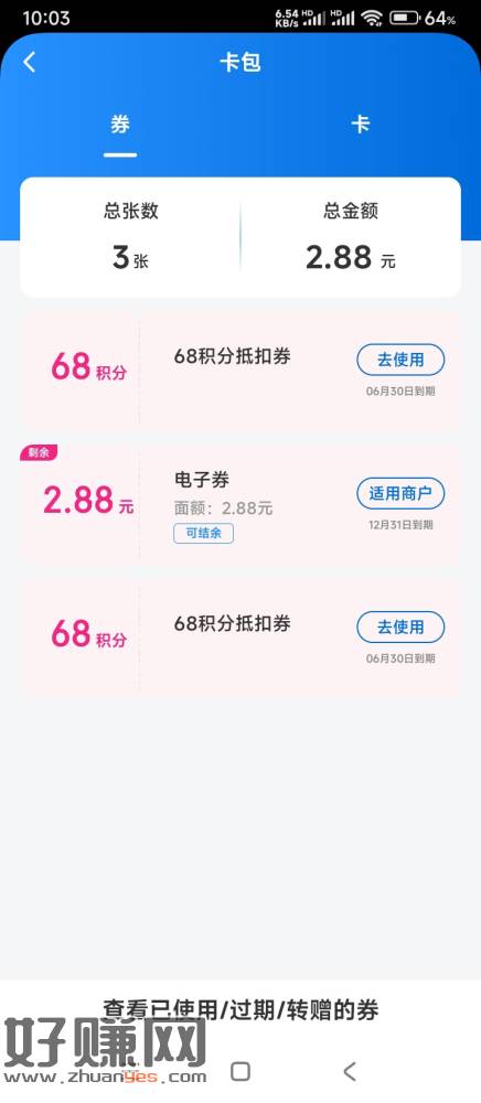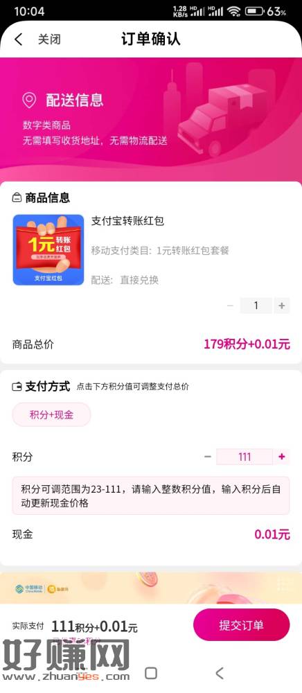 和包每月2个68积分别忘记领了,1元的小额支付宝转账红包正好搭配使用