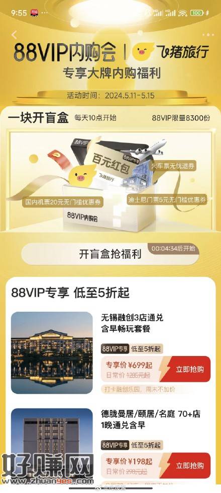 88会员,10点1元开盲盒,应该是飞猪的,刚需看看