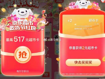 京东吃货嘉年华抽517亓超市卡