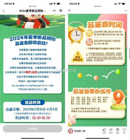 【海底捞新品品鉴会可以报名了】10点开始报名!微信打开地址->5月16日~6月4日每天每店抽4个名额免费吃,限制图2的城市参与https://mp.weixin.qq.com/s/xppeL7yOXfrrRGGeM5T1zw