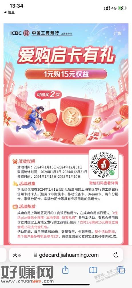 昨天发了领76红包的帖子(非首卡),今天又收到工行的短信,可以领取30红包,美滋滋啊,近期下卡的抓紧领取吧,这个数量有限