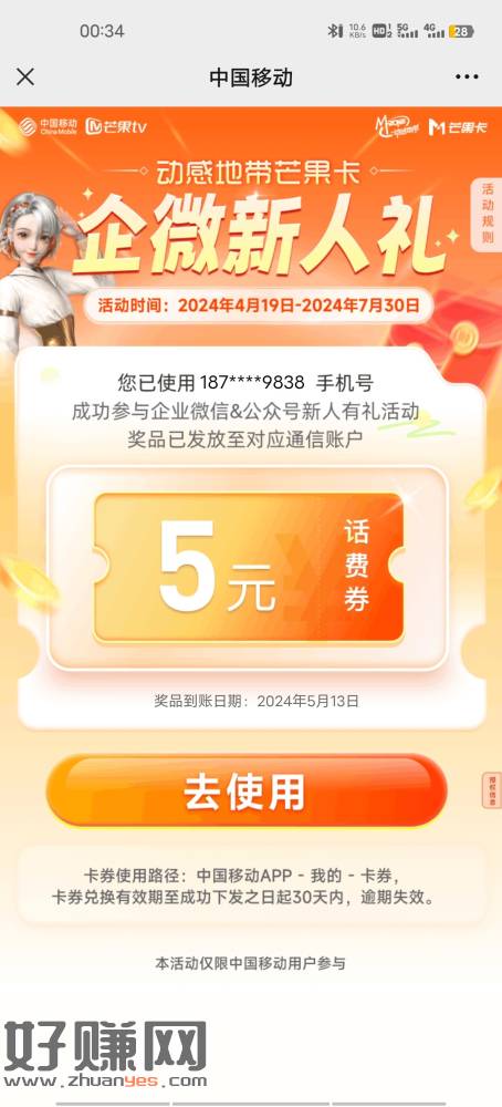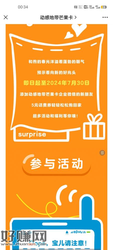 微信公众号动感地带芒果 4.19 参加活动 加后返回 限移动 自测.