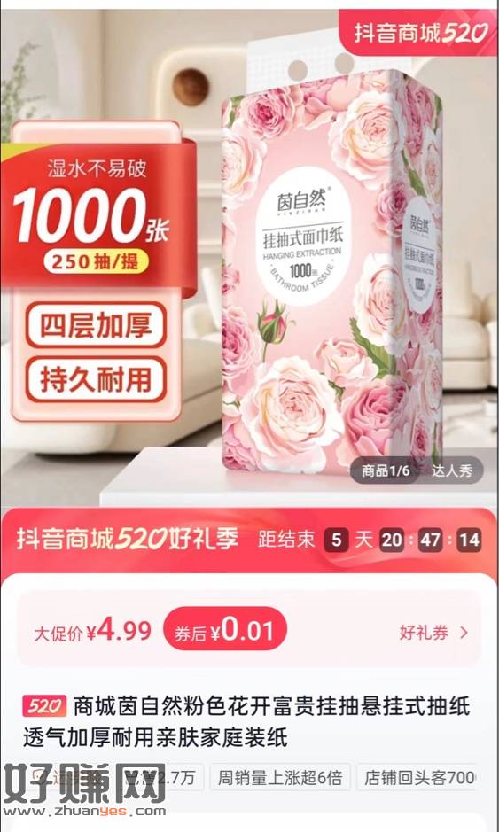 0.01分1000张纸巾,没睡得试试,多号多撸,号黑应该是当