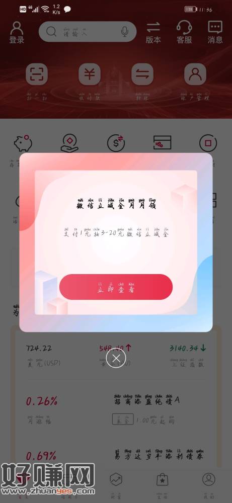 中行App打开就有提示:支付一元抽3-20元微信立减金。