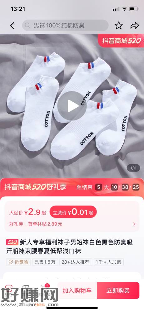 0.01分一双袜子,速,多号多撸。等会又抢光