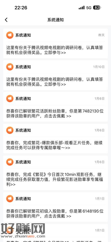 腾讯视频系统消息答题,有机率q币或会员。中奖结果过几天才出