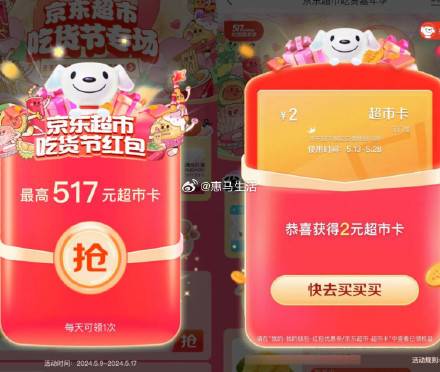 京东吃货嘉年华每天抽超市卡,京东抽0.2~50亓超市卡