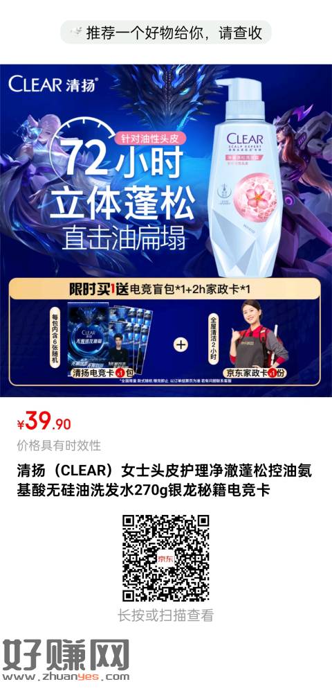 0撸清扬洗发水(女士) 入会送6-5(部分人还有张10-5可