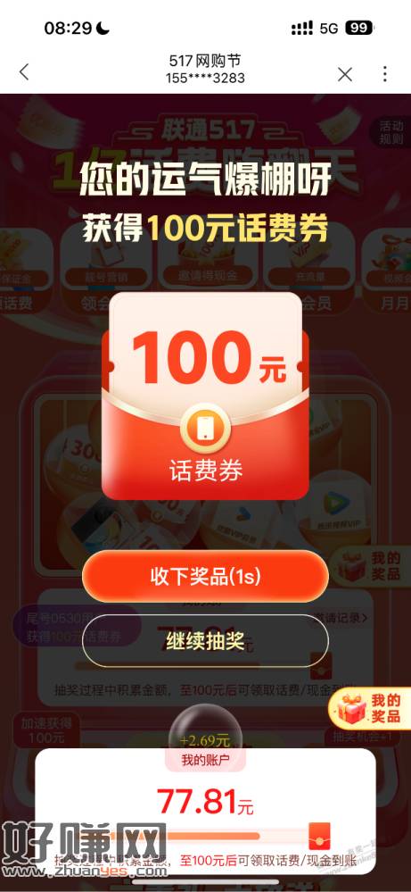 联通首页水了中了就是100话费