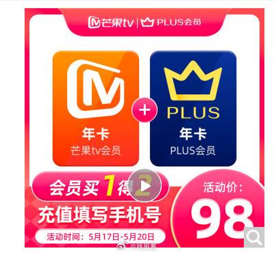 98,【买一赠一】芒果TV会员12个月年卡+京东Plus年卡