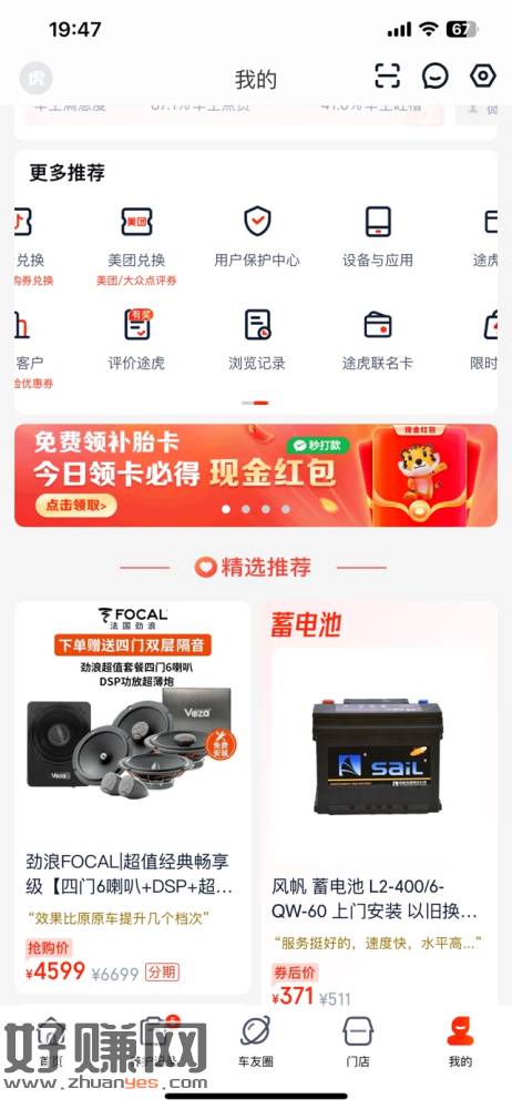 途虎养车app,我的,下拉横幅,添加客服领取一次,分享领取一