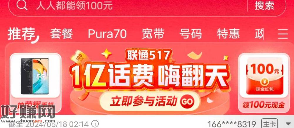 联通首页联通517网购节 ,机会废完,认话费