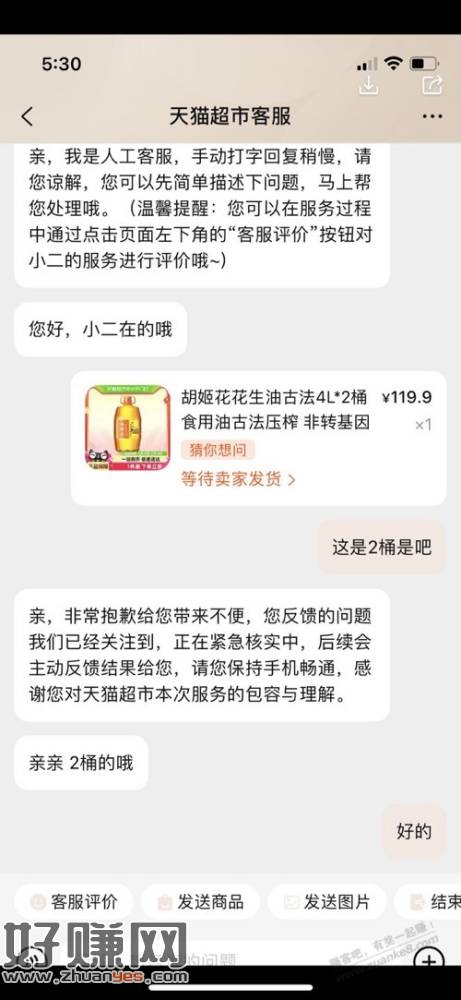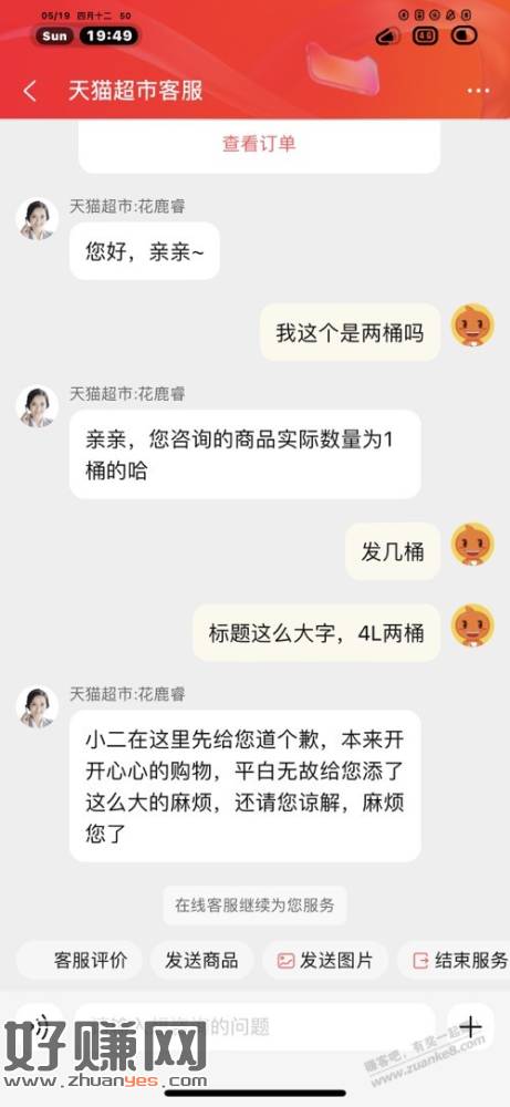 下了两单,有一单还没付款,我这问的都说一桶,为什么第二张图别人问的有说两桶的