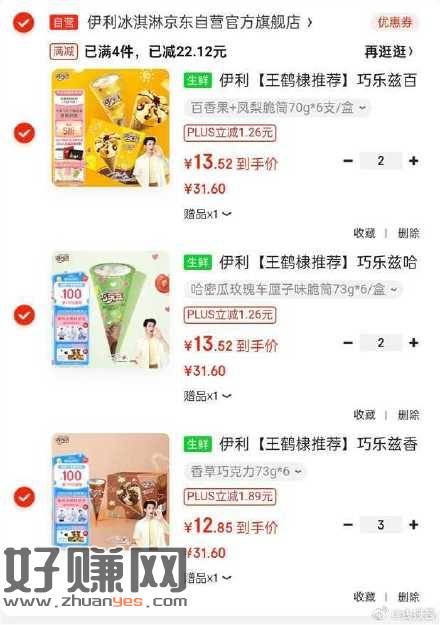 伊利巧乐兹脆筒70-73g*6支 ,——