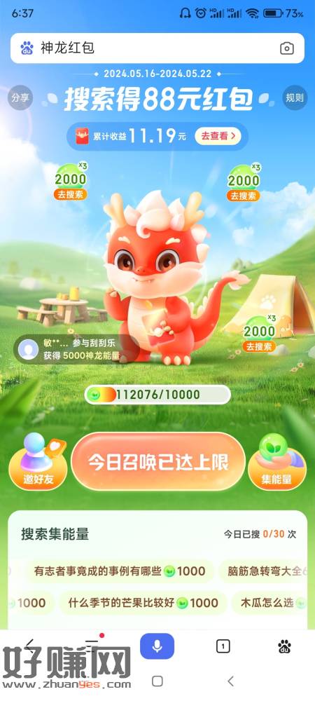 百度神龙,够10的可以去提了,就剩两天要结束了,今天又提了1