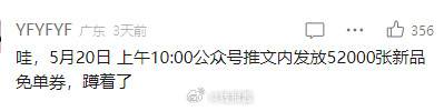 茉莉奶白领取5.2万份免单券,应该是公众号10点最新推文有入口