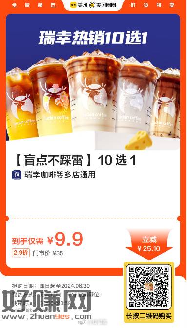 9.9,瑞幸咖啡|[ 盲点不踩雷 ] 10 选 1