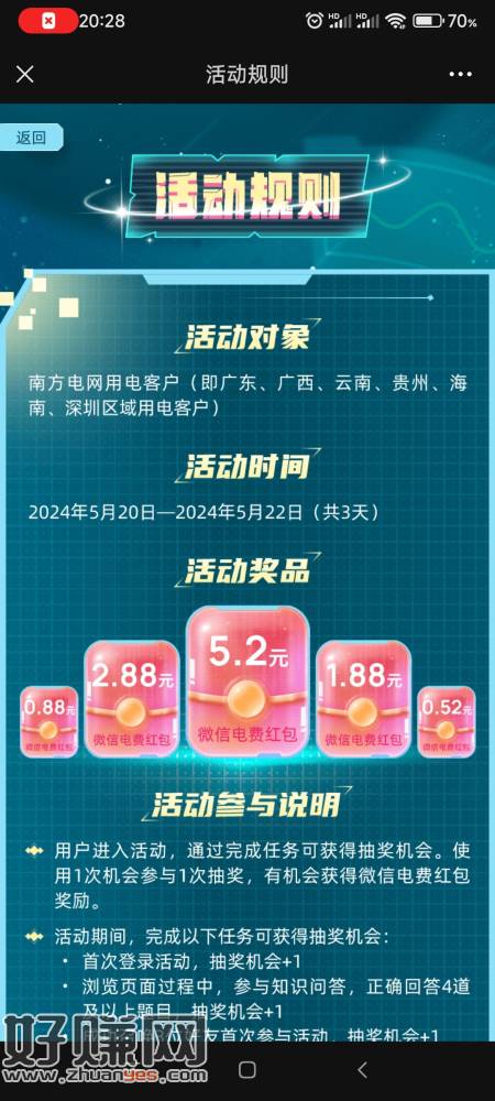 注意看图片规则,限制地区,得到后根据规则打开兑换,点预存电费,然后像ljj的规则一样,达到数目才减,不知道数目的可以看vx的我的卡券那里,得到的东西在那里可以看数目