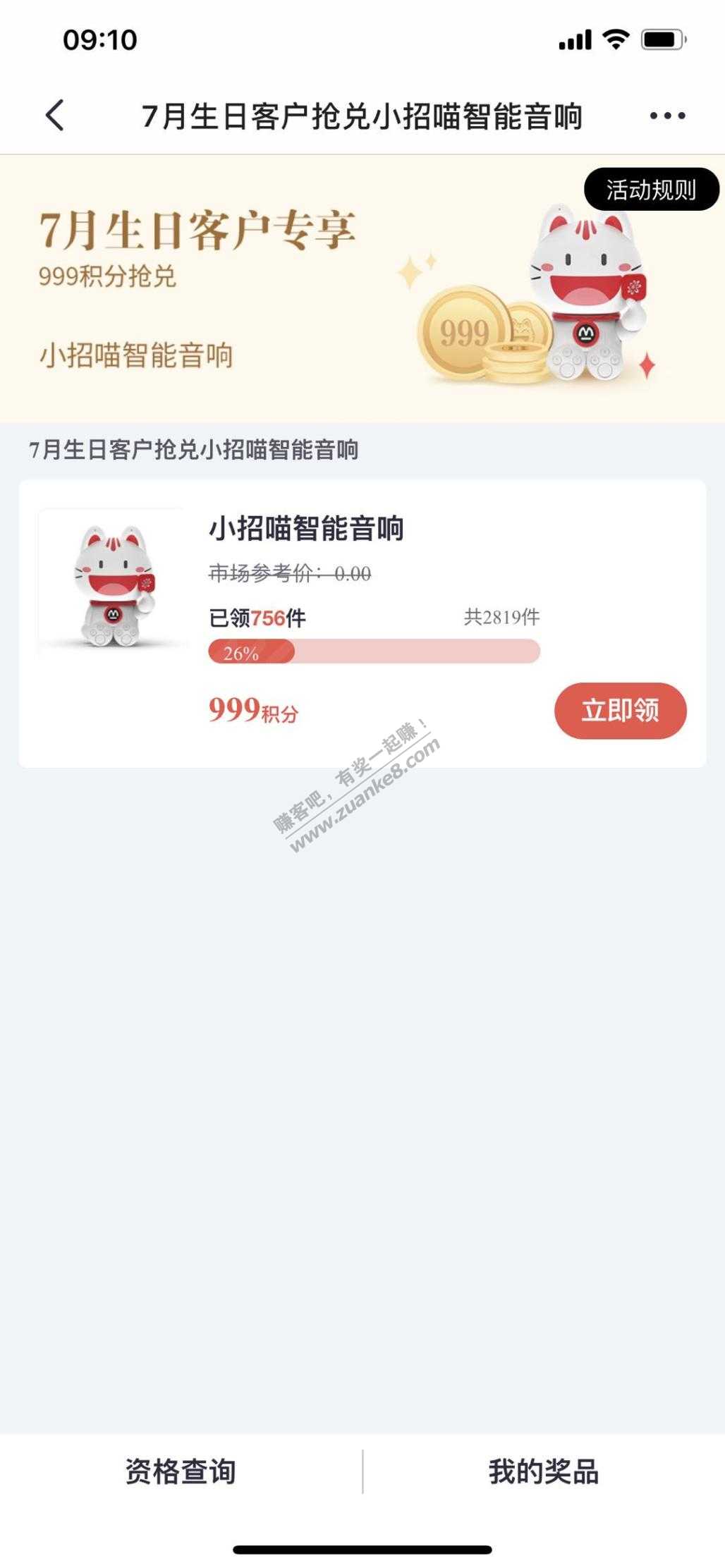 999积分抢兑小招喵智能音响,7月生日的喵仔喵妹们有需要的自己换~