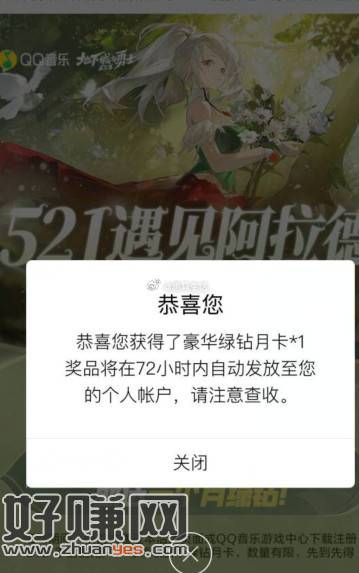 【地下城与勇士手游领绿钻月卡】几分钟搞定!跳转到QQ音乐APP->下载注册游戏->返回页面领绿钻月卡