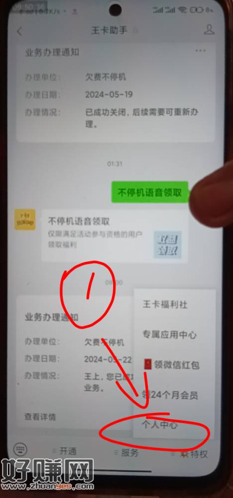 老哥们,中国联通100没有中的,现在可以去领语音啊。每个月领100语音好像可以领1200分钟的,每个月100分钟。折合人民币价值也有120元呢,今天人人120。@ 看图兄弟们 全网处报 进入个人中心 就看到了开通不停机业务送语音。 加精 很很加精@ @ @