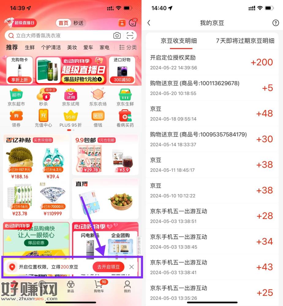 【京东简单开启位置领200京豆】先去手机设置里关闭京东APP的位置权限->再打开京东APP 首页底部会弹出200京豆->重新打开位置即可得200京豆