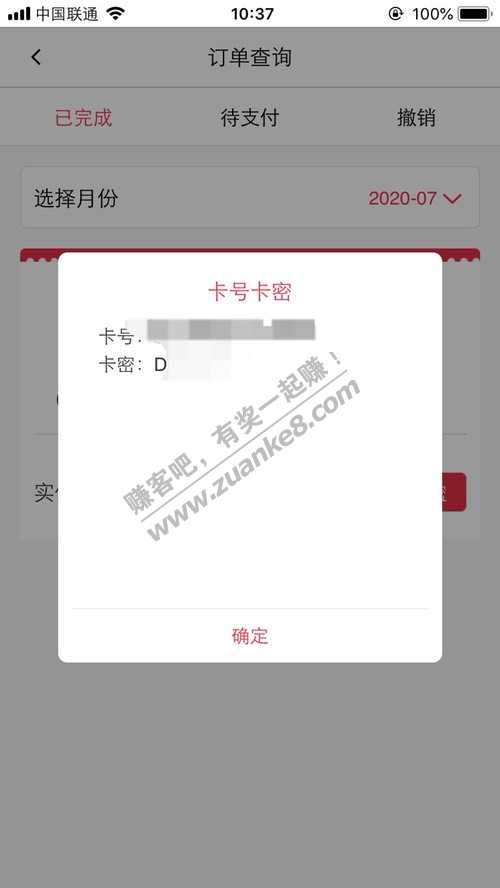 上图,我的反正是卡号和卡密