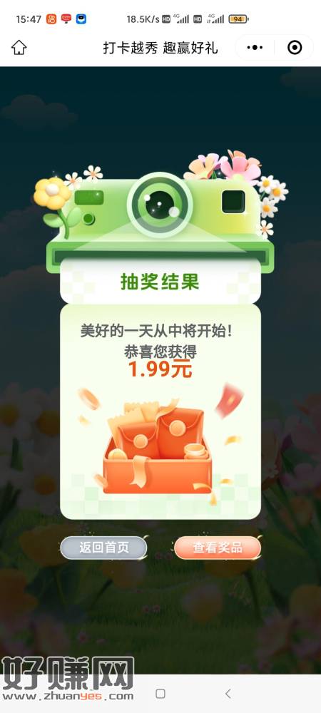 V'X扫进去,越秀房宝打卡返回抽奖,我抽了1.99和0.8