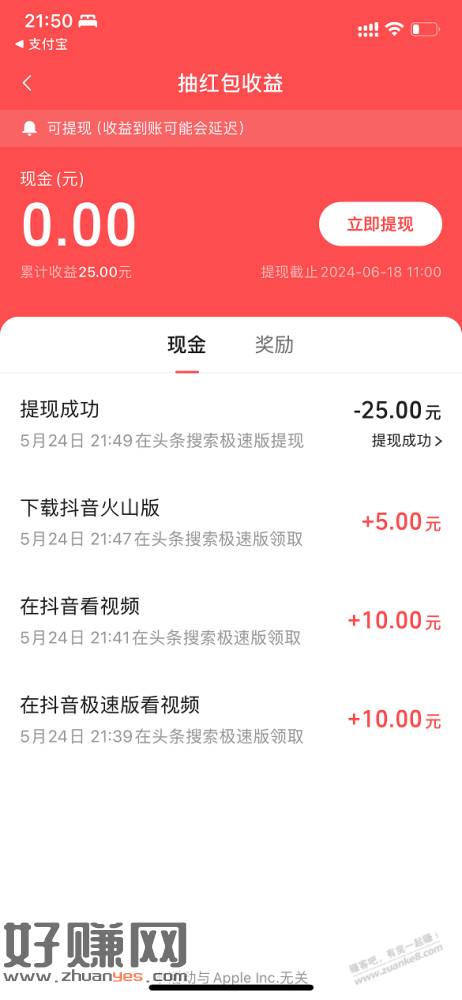我这个是新号 头条极速版给了两次10 然后又弹出了下载抖音火山版给5元的任务 共25元
