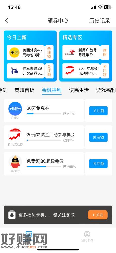 QQ钱包领福利金融福利签约第三方 提交就行 不需要开户也不用接电话秒到wx卡包