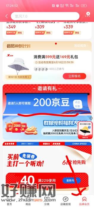 200京豆 特步官方旗舰店 拉一人入会直接领 大拉小