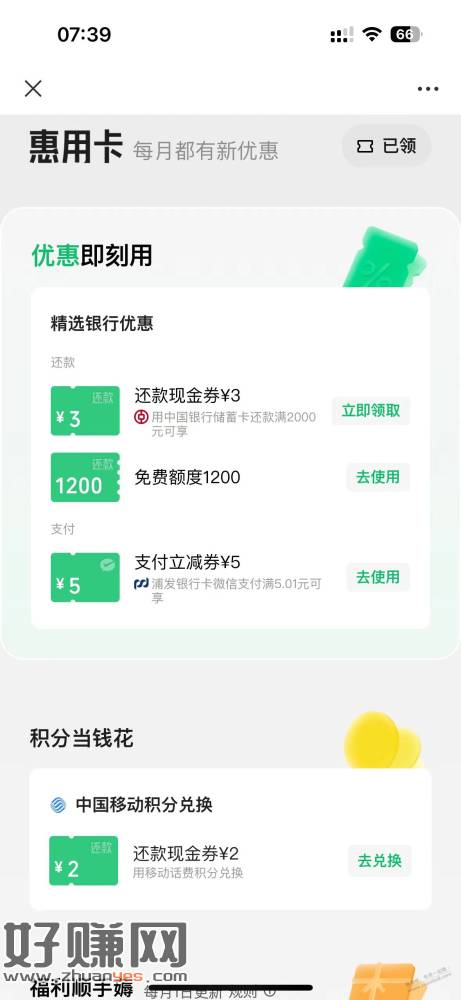 微信点开,有5元立减劵、3元XYK还款卷、提现免费额度等,大毛,好用加果。