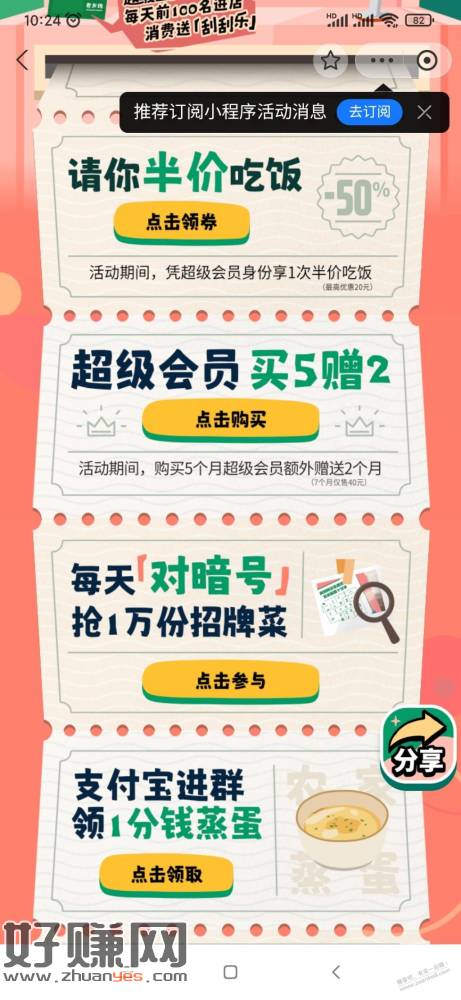 今天超级会员有半价券,还有暗号半价吃饭送鸡汤,显示消费25可用,相当于还得消费10元,不知道能不能和明天的菜品叠加用