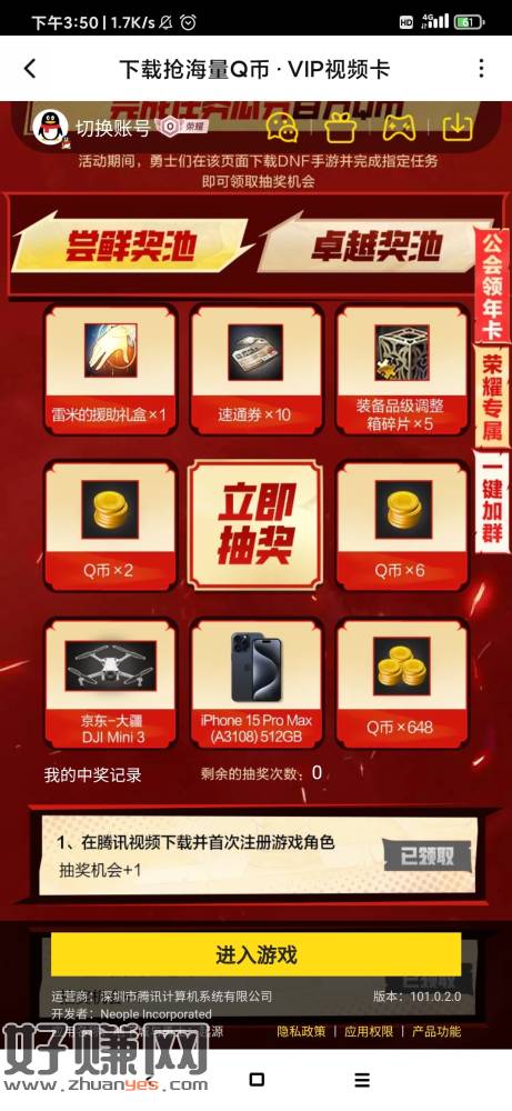 腾讯视频dnf还有,两天25级13qb刚刚好,信用分低不行,有个300左右就行,可助力自己5qb,要在腾讯视频下一次,换号打即可