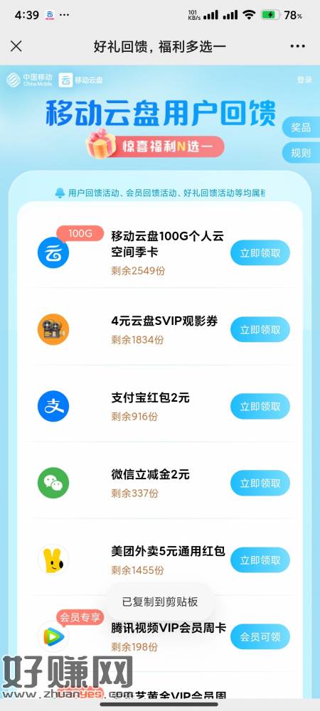 移动云盘补了