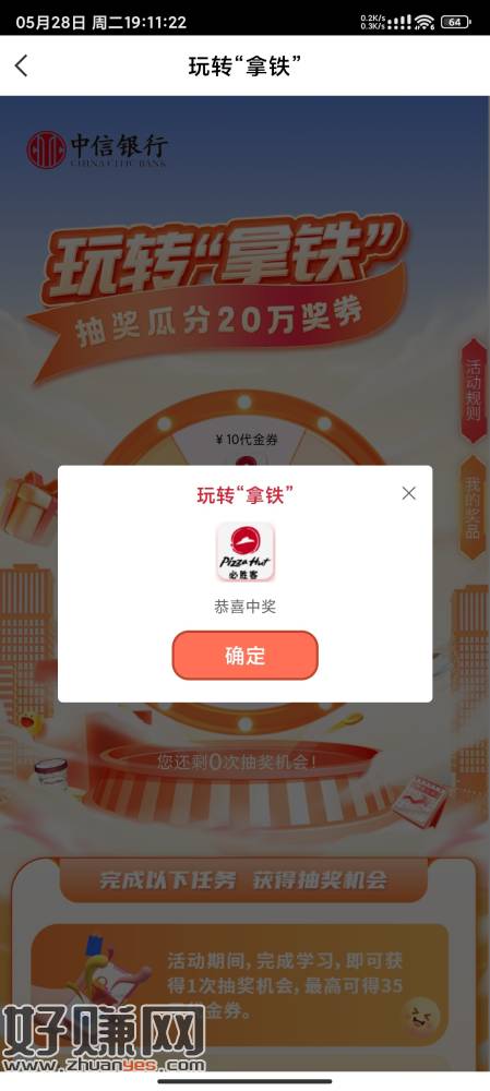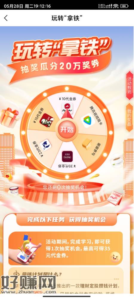 中信app玩转拿铁,设置1,完成后抽奖,再取消定投。