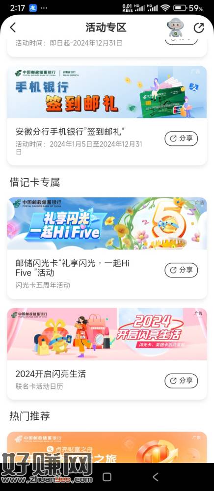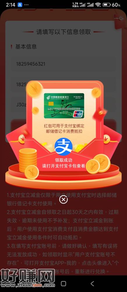 邮储安徽,"手机银行,签到邮礼",保底5元通用支付宝红包