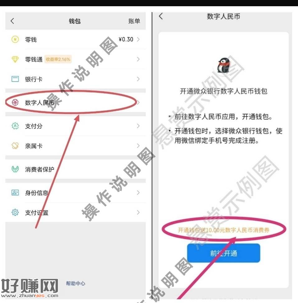 跳转数字人民币App用有券的微信手机号开通微众银行四类钱包后送一张10消费券