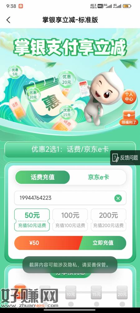 农行 城市专区 切换佛山 佛山大聚惠 点掌银充话费享受立减 45充50话费或者45买50ek