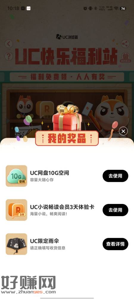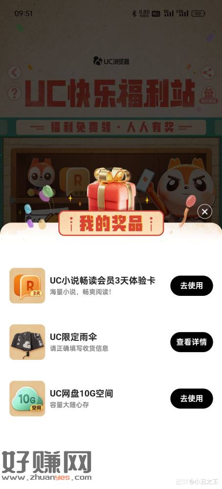 UC浏览器,搜索UC摇人榜,投票抽奖,概率中实物,不中勿怪