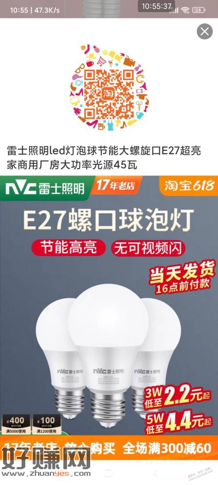 *****雷士3w LED灯泡1.12元,白暖白暖黄都有