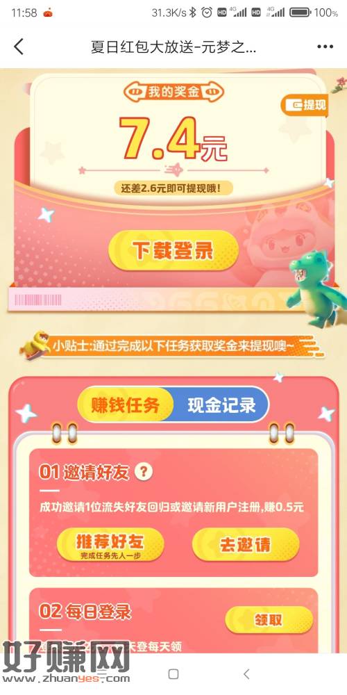 元梦之星,活动弹窗。夏日红包大放送。拉5领10。