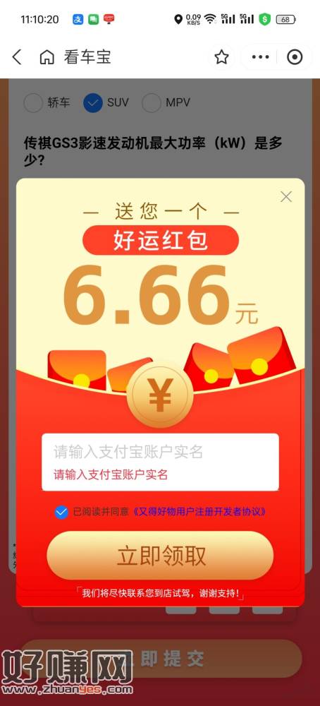 自如生活节抽奖 亲测8.8元现金+眼罩