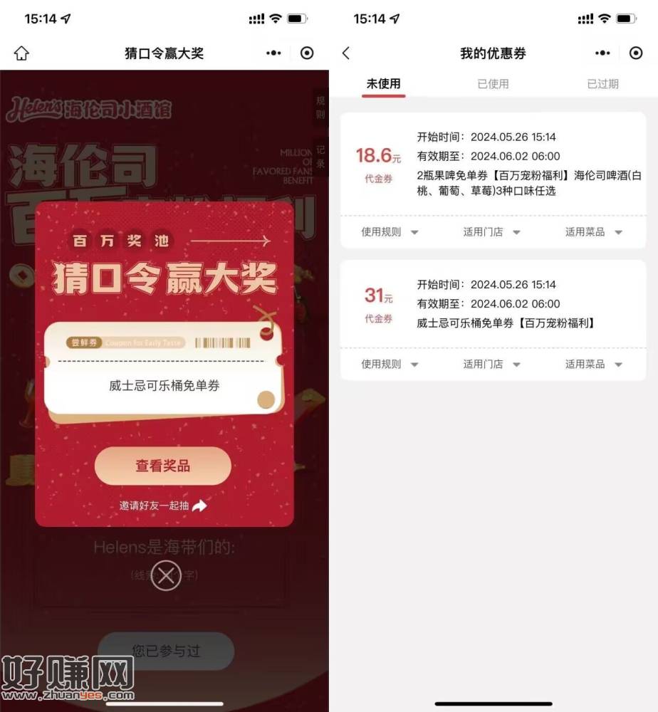 海伦斯酒馆抽各种饮品免单券
