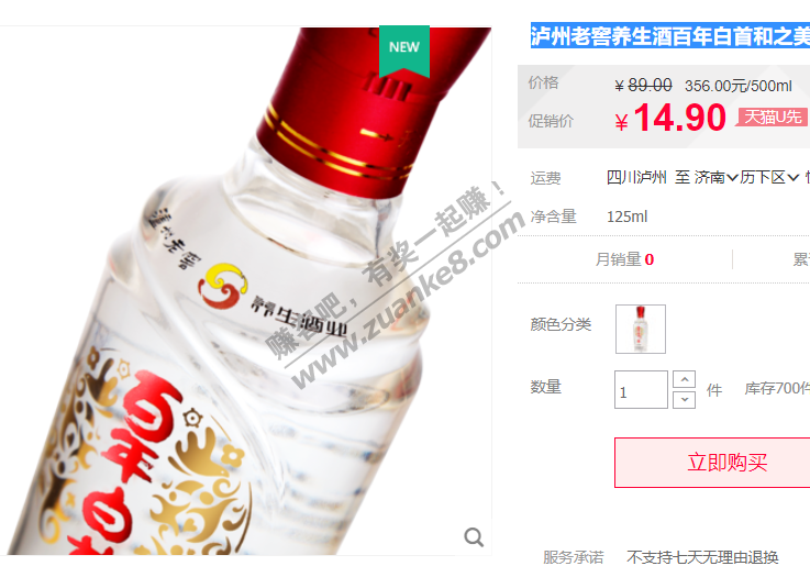 泸州老窖125ml品鉴装小酒,14.9,限购一件