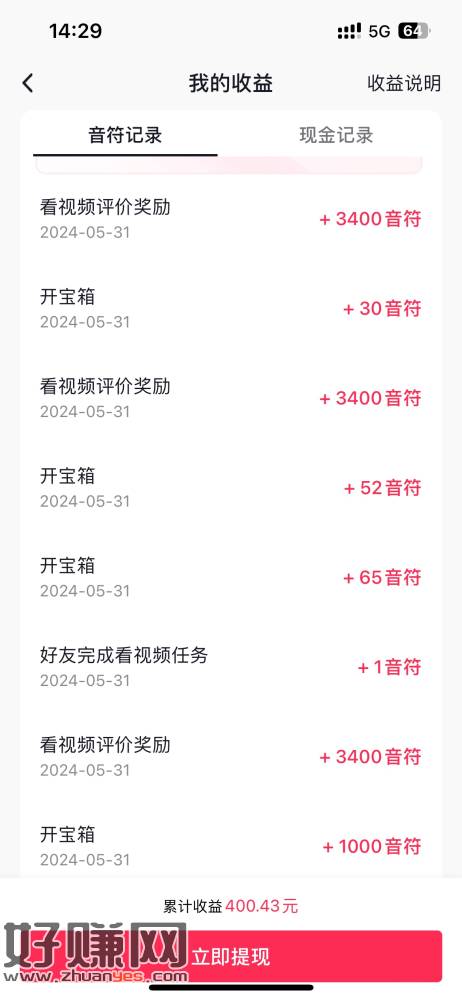 抖音极速版宝箱广告3400音符,每15分钟一次