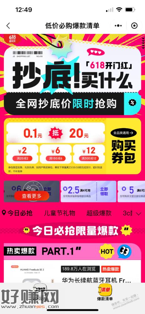 微信,发现,购物,右上角爆款清单,领6购买,还有咖啡跟蜜雪
